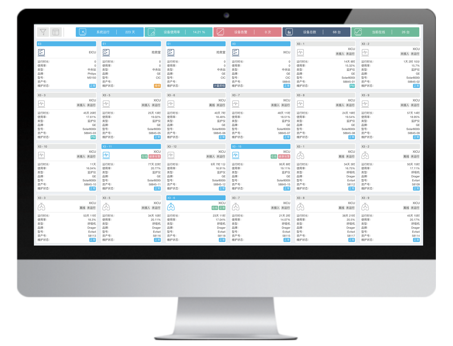 多臺不同品牌的有創(chuàng)呼吸機聯(lián)網,并通過大屏實時集中呈現(xiàn)治療預設參數和監(jiān)測參數,實現(xiàn)多臺集中監(jiān)測、集中管理和數據存儲。