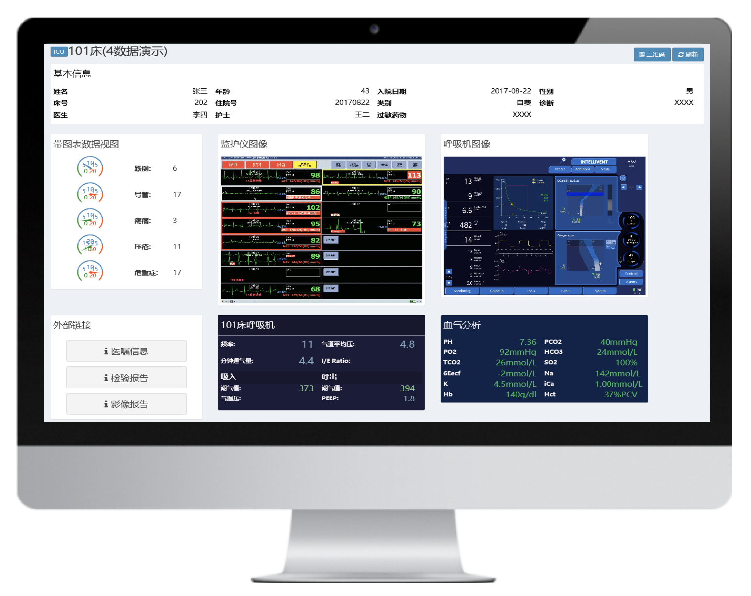 實時呈現(xiàn)病人體征參數、變化趨勢,診療設備參數,同時接入醫(yī)囑、檢驗結果數據,一體化呈現(xiàn)存儲和回溯,方便醫(yī)護急救、會診、查房